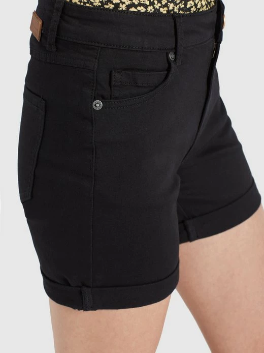 Im Slim Fit mit Mid Waist geschnitten und aus einem festen Baumwollstoff gefertigt begeistert die kurze khujo Hose RIVEN. Diese 5-Pocket Shorts schließt mit einer Kombination aus Metallreißverschluss und Knopf und ist zudem mit Gürtelschlaufen am Bund ausgestattet. Der umgeschlagene Hosensaum betont bei dieser einfarbigen Hotpants den lässigen Charakter.