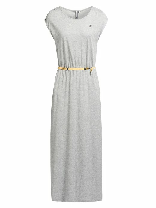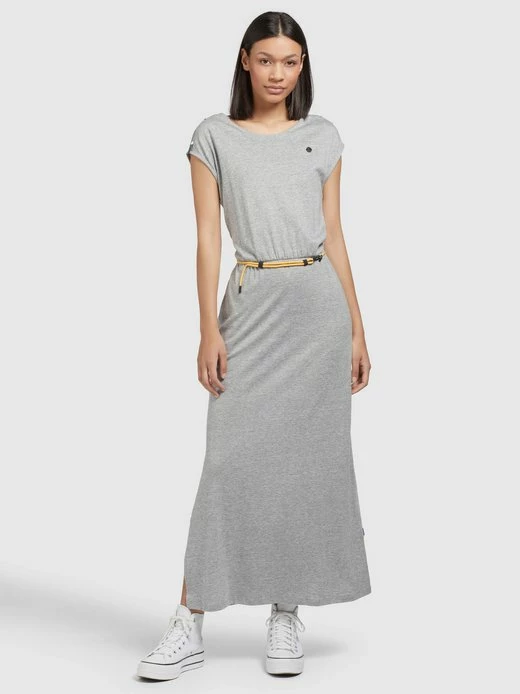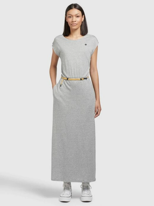 Das wadenlange khujo Jerseykleid MIRNA ist mit einem Stretch-Einsatz an der Taille und einem abnehmbaren Gürtel bestehend aus einer Kordel mit Verschluss ausgestattet. Ein Rundhalsausschnitt, Eingrifftaschen und überschnittene Schultern mit Flügelärmeln, sowie ein einseitiger Gehschlitz runden das Design bei diesem, im Loose Fit geschnittenem Sommerkleid gelungen ab.