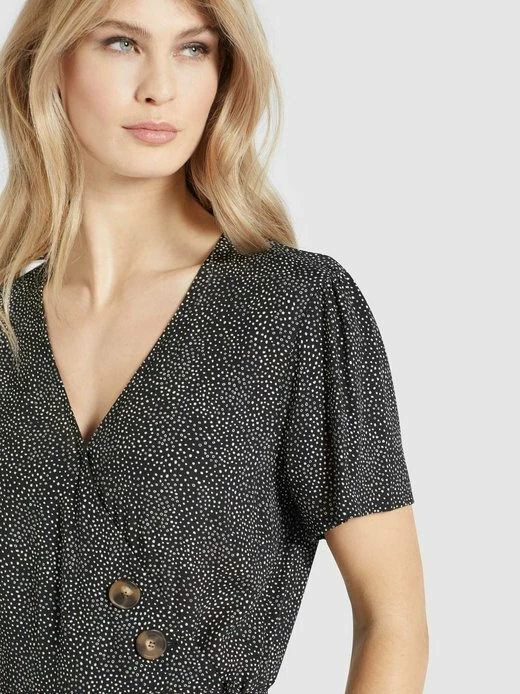 Aus leichter Viskose gefertigt begeistert das wadenlange khujo Kleid PORGY. Dieses Wickelkleid ist mit kurzen Ärmeln, einem V-Ausschnitt, einer Knopfleiste und einem Bindeband ausgestattet. Vor ungewollten Einblicken schützt bei diesem Midikleid der integrierte Unterrock.