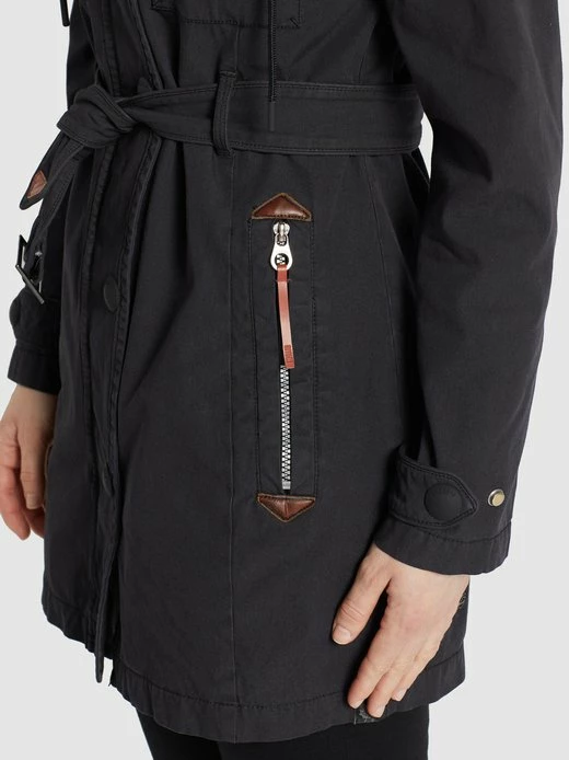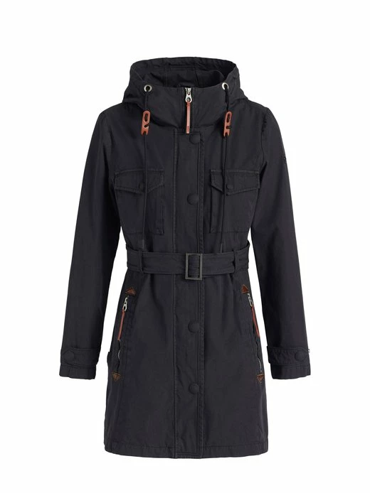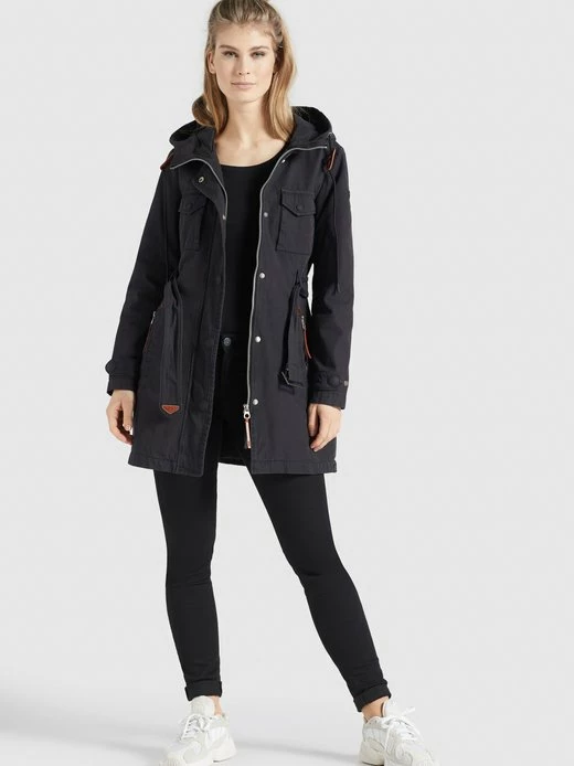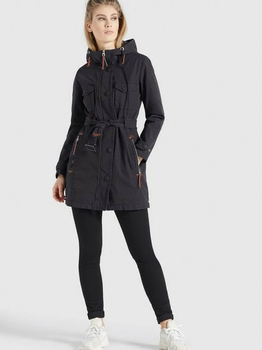 Ein Klassiker im neuen Look: So präsentiert sich der einfarbige khujo Mantel ERENE. Dieser einfarbige Kurzmantel ist mit einem leichten Innenfutter ausgestattet und überzeugt mit einer Vielzahl an Details, wie Kordelzügen an der Kapuze und der Taille, einer Kombination aus Metallreißverschluss und Druckknopfleiste, einem abnehmbaren Stoffgürtel und verstellbaren Riegeln an den Ärmelenden. Brusttaschen mit Druckknopf, Eingrifftaschen mit Reißverschluss und eine Innentasche bieten zudem jede Menge Stauraum für Kleinigkeiten.