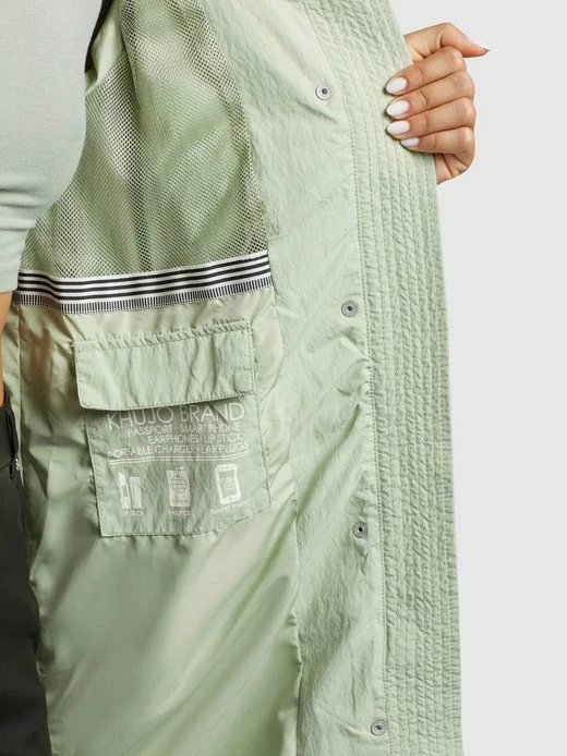 Der lässige Schnitt, das leichte Material mit Crinkle-Effekt und die gesmokten Ärmelinnenseiten geben dem khujo Mantel SILICA einen unverwechselbaren Look. Ein Zwei-Wege-Reißverschluss, das Innenfutter mit einem Einsatz aus Mesh am Oberkörper, Kordelzüge an der Kapuze und Taille, elastische Abschlüsse an den Ärmelenden sowie Reißverschlusstaschen und eine Innentasche runden das Desgin ab.