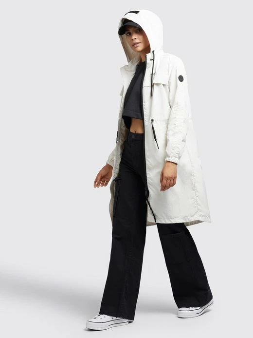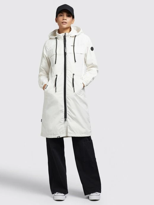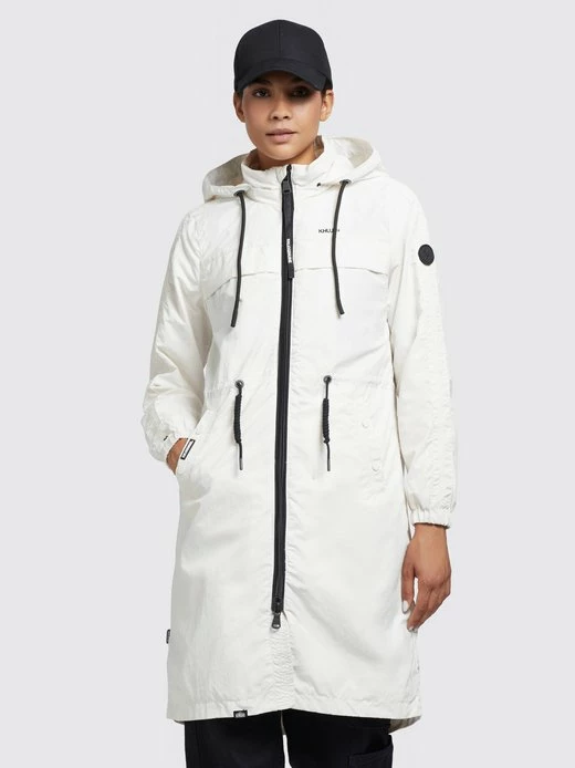 Der lange Schnitt und das leichte Material mit Crinkle-Effekt geben dem khujo Mantel VOYA3 einen uerwechselbaren Look. Ein Zwei-Wege-Reißverschluss und ein Gehschlitz sorgen bei diesem Sommerparka für optimale Bewegungsfreiheit. Das Innenfutter mit einem Einsatz aus Mesh am Oberkörper, eine Innentasche, Kordelzüge an der abnehmbaren Kapuze und der Taille, elastische Abschlüsse an den Ärmelenden sowie Eingrifftaschen mit Druckknopfverschluss runden das Desgin ab.