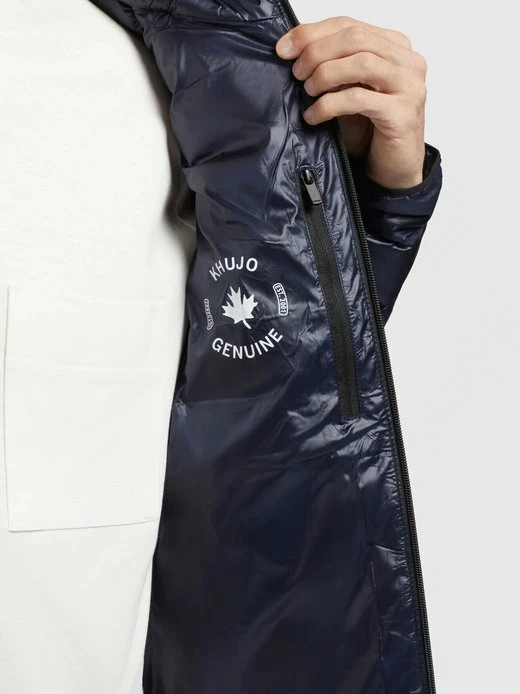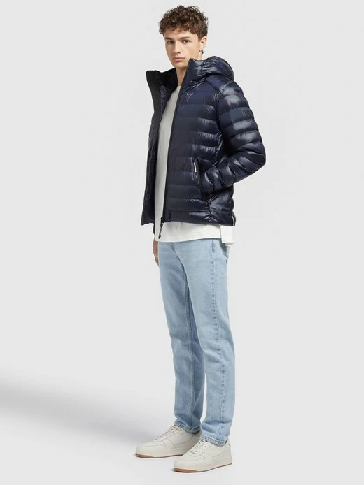 Die hüftlange, leicht glänzende khujo Jacke VITUS SHINY mit hoch schließender Kapuze und einer leichten Wattierung präsentiert sich minimalistisch und sportlich zugleich. Dank einem Reißverschluss und seitlichen Reißverschlusstaschen mit einer wasserabweisenden Beschichtung, einer Windschutzblende und elastischen Bündchen bist Du mit dieser Steppjacke gut ausgestattet.